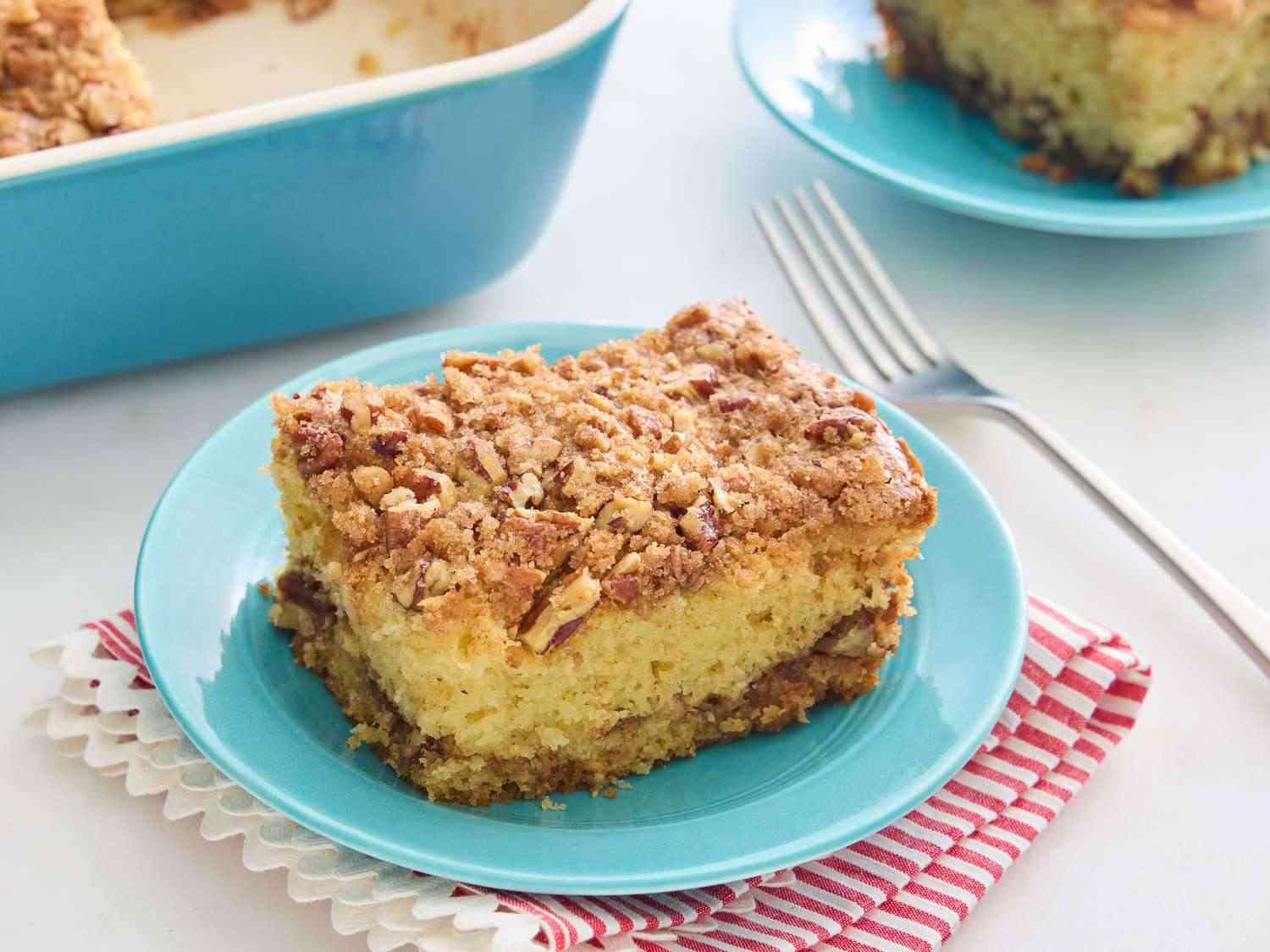 Deliciously moist coffee cake with a rich pecan topping.